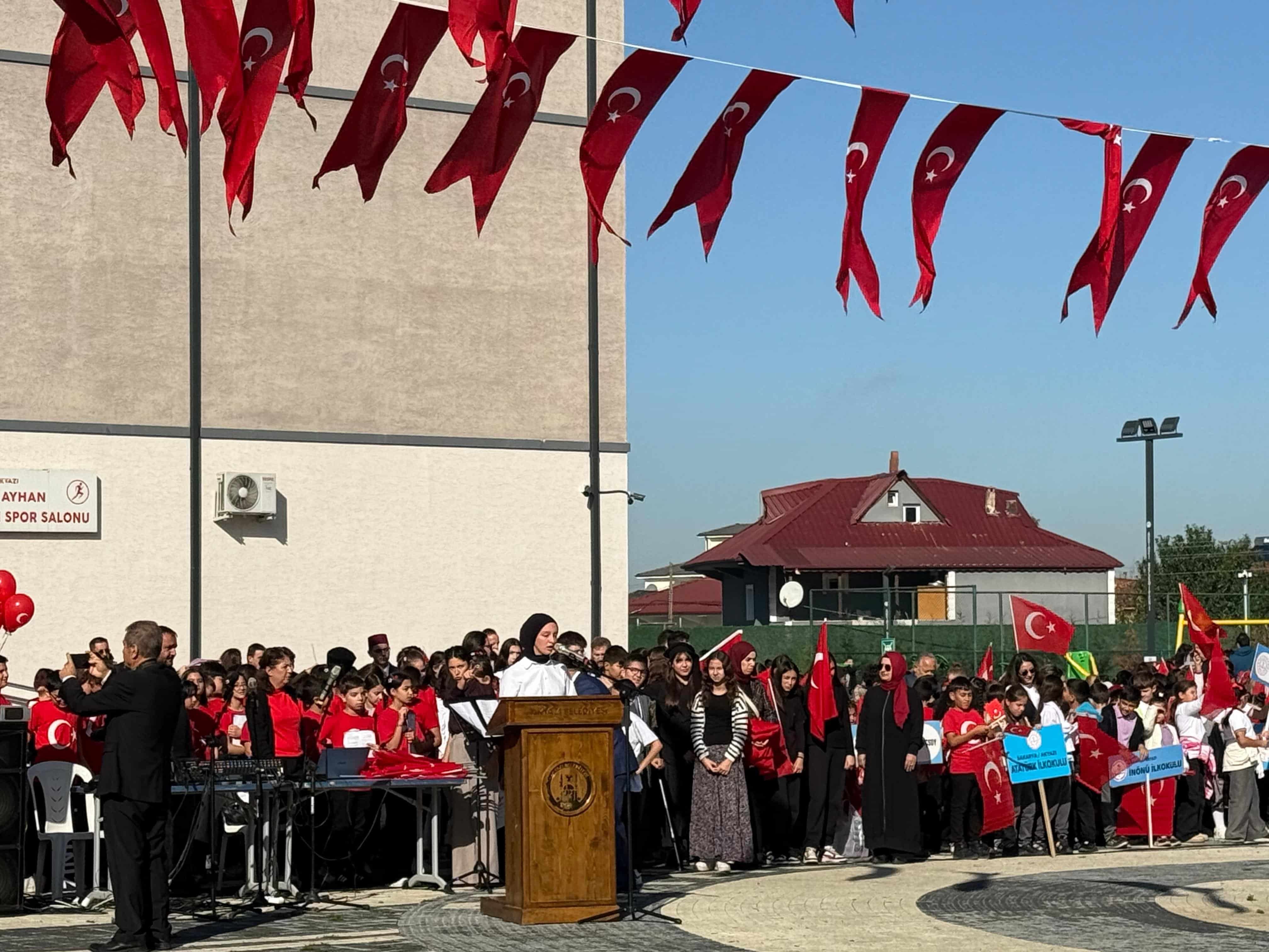 Akyazı Kapalı Spor Salonu önünde gerçekleştirilen programa, Akyazı Kaymakamı Mustafa İkbal Eşki, Belediye Başkan Vekili Mehmet Öztürk, İlçe Millî Eğitim Müdürü Hasan Can, protokol üyeleri, öğretmenler, öğrenciler ve çok sayıda vatandaş katıldı.