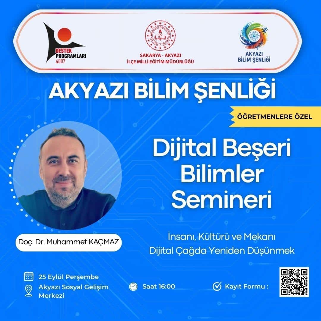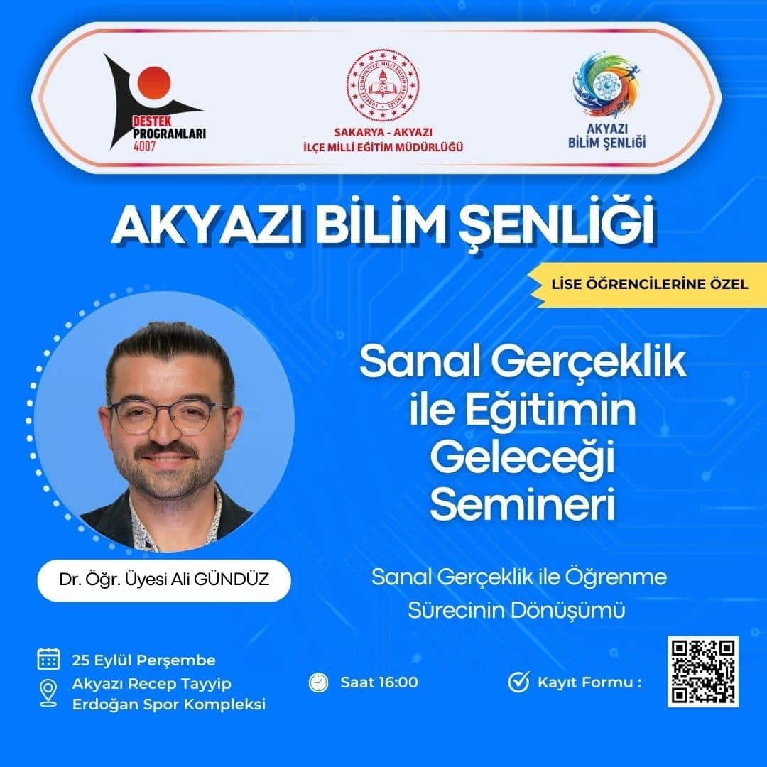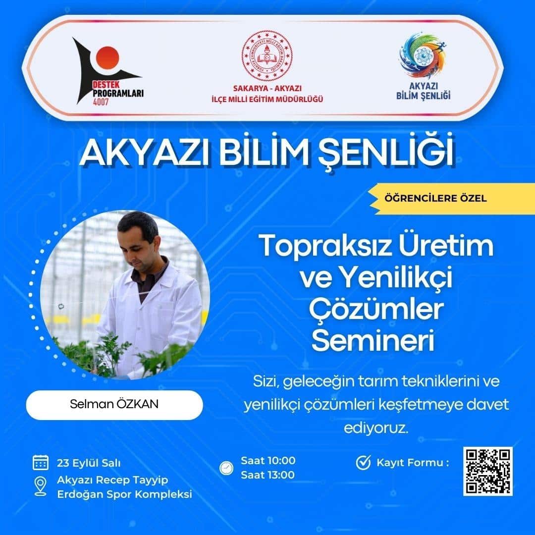 23-26 Eylül 2025 tarihleri arasında gerçekleşecek Akyazı Bilim Şenliği kapsamında, öğrenciler ve öğretmenler için birbirinden değerli seminerler ve paneller düzenlenecektir.